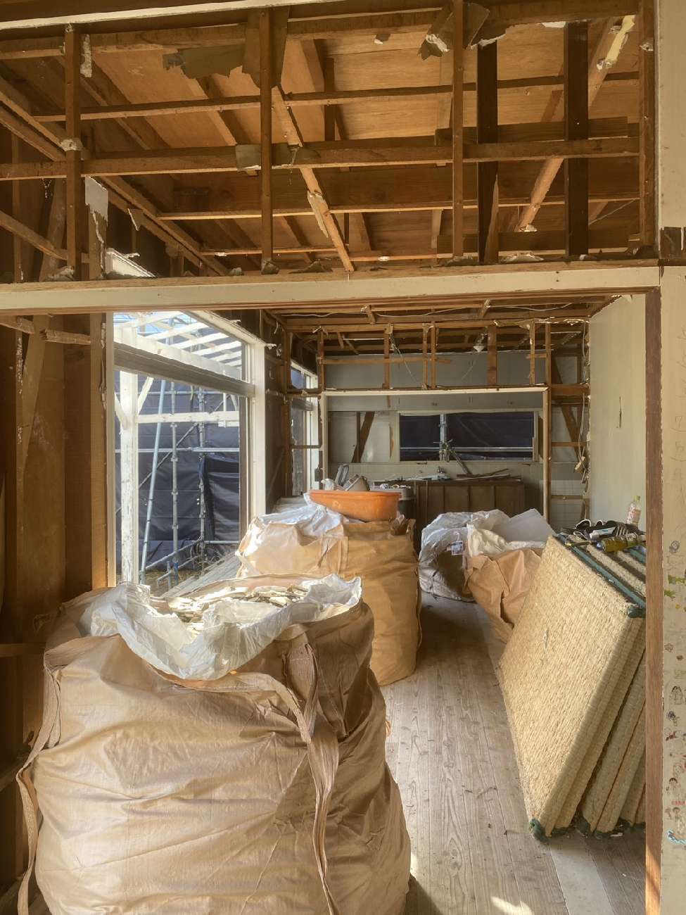 ②屋根材撤去と内装解体